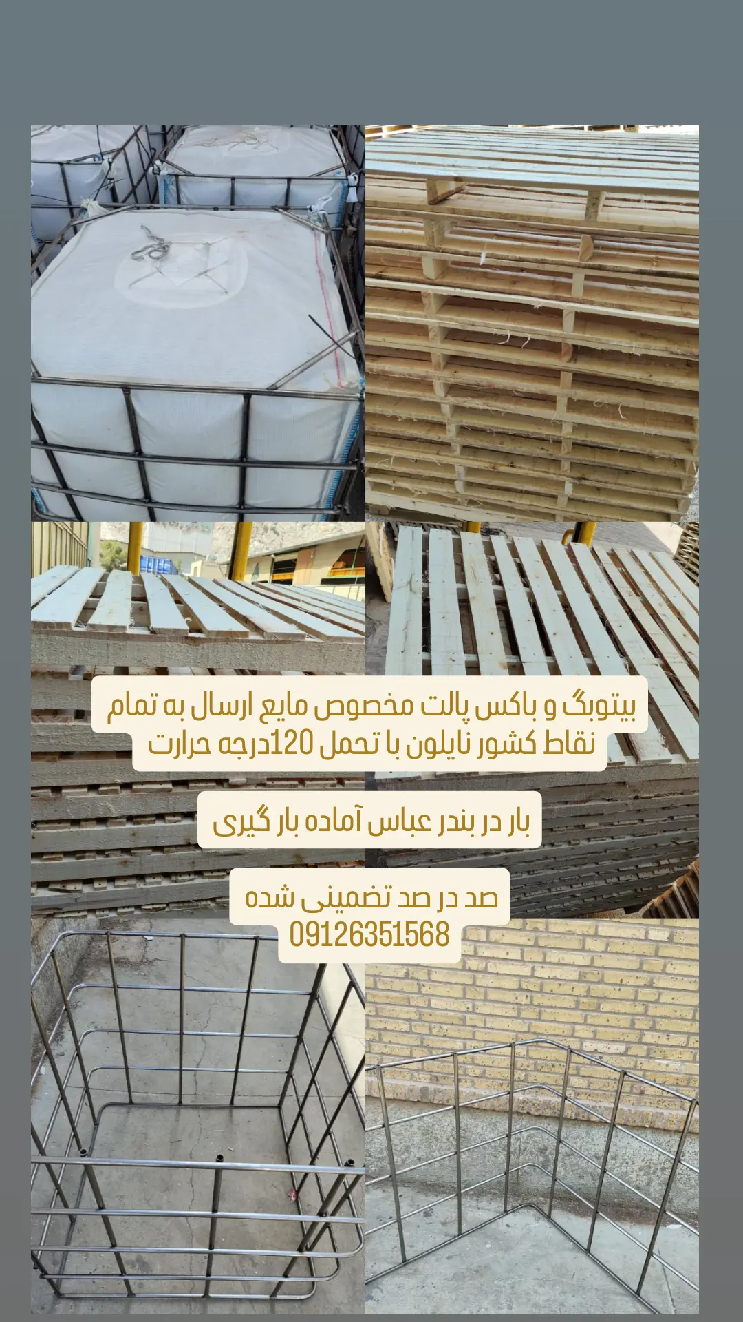 1. جامبوبگ در قاب فلزی یا پالت قرار گیرد.