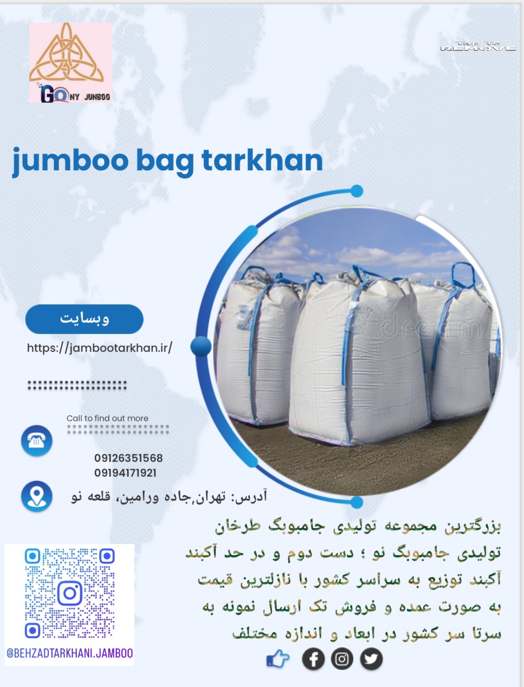 ضمنا مجموعه کارخانه های جامبوبگ طرخان صادرات انواع کیسههای جامبو بگ و پلی پروپیلن به کشورهای همسایه نام خود را در رده یکی از برترین واحدهای صادر کننده کشور عزیزمان ایران ثبت نمایید.